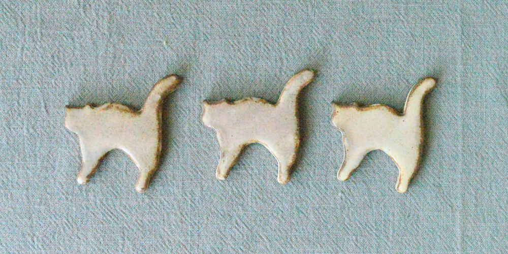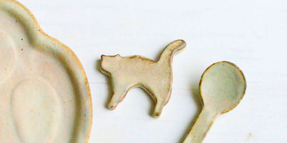 陶器市にお試しで作ったこのにゃんのカトラリーレストが好評でしたので、今回制作いたしました。足音も立てず近づいてくるにゃんを思い起こすようなカトラリーレストです。かわいいにゃんがたまらない!