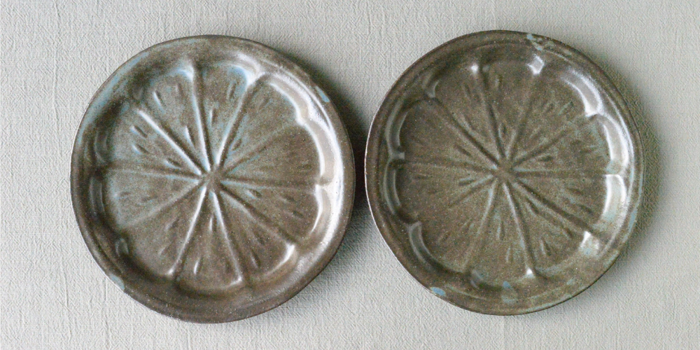 焼成時に窯の中の温度差がある事や天然の素材を釉薬の材料として使用しているためひとつひとつ色合いが違います。